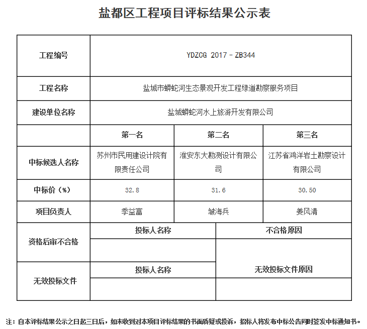 鹽城市蟒蛇河生態(tài)景觀開發(fā)工程綠道勘察服務(wù)項(xiàng)目中標(biāo)結(jié)果公示