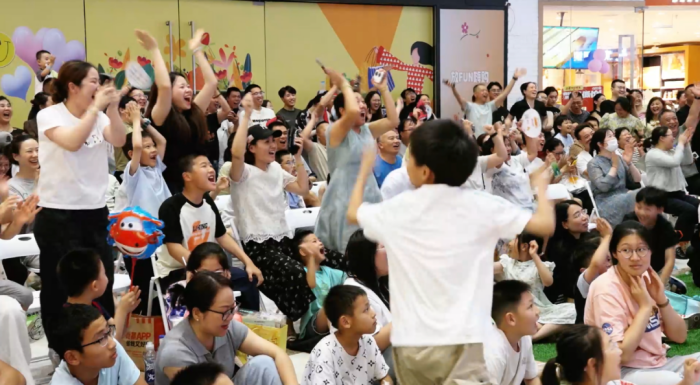 6月28日,鹽都萬達(dá)廣場(chǎng)的一樓中庭化作沸騰的綠茵戰(zhàn)場(chǎng),300平方米的超清巨幕上清晰展現(xiàn)球員們的每一次拼搶、每一腳射門,現(xiàn)場(chǎng)座無虛席,球迷們目不轉(zhuǎn)睛緊盯賽況。隨著比賽進(jìn)入白熱化,助威聲、歡呼聲如浪潮翻涌,沉浸式觀賽體驗(yàn)將賽場(chǎng)的熱血與激情完美復(fù)刻。