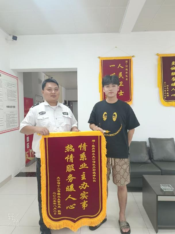 8月,大公館小區(qū)物業(yè)服務(wù)中心內(nèi)暖意融融。業(yè)主黃先生送來一面寫著“情系業(yè)主辦實(shí)事,熱情服務(wù)暖人心”的錦旗,感謝秩序部隊(duì)長姚峰幫忙找回丟失財(cái)物。業(yè)主金女士也將一面寫著“人民衛(wèi)士,一心為民”的錦旗鄭重地送到保安隊(duì)長徐鵬升手中,衷心感謝他通過監(jiān)控追蹤,成功抓獲小偷,為自己追回了被盜財(cái)物。安保團(tuán)隊(duì)以實(shí)際行動詮釋著“服務(wù)業(yè)主”的宗旨,讓業(yè)主們感受到了家一般的溫暖。